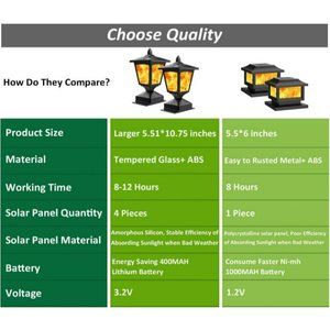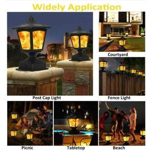 GORGEOUS DANCING SOLAR POST CAP LIGHT: Constructed from superior quality safe unique real flames, solar post cap lights provide a perfect campfire atmosphere for your outdoor activities, clear heat resistance lampshade also let you enjoy more romantic flicking flames landscape.