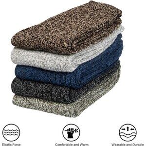 Pack of 5 Womens Wool Socks Winter Warm Thick Knit Soft Vintage Casual Crew