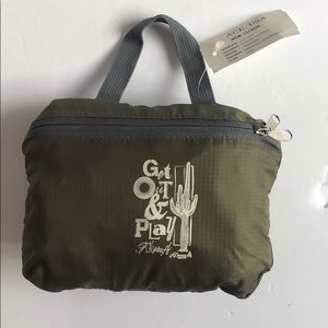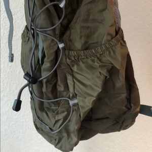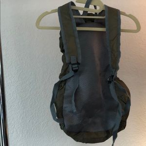 Lightweight day pack with divided main compartment and drawcord closure, side pockets, lid compartment with zippered pockets, front buckle closure, mesh lined straps and back panel, adjustable straps, quick grab top handle, and front bungee. Packs into 7.5” x 6” pouch in lid pocket. 100% polyester
