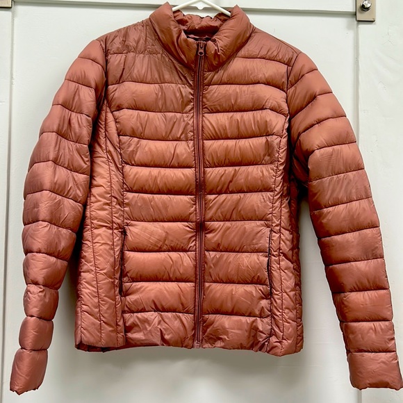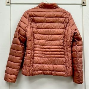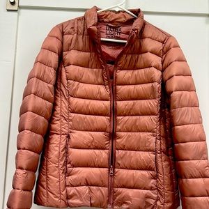 Rose colored ultra light packable puffer jacket- like new. Easy to wear and layer. Great condition n definitely fun.