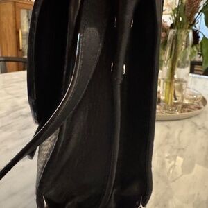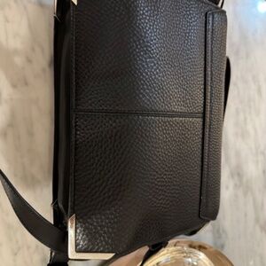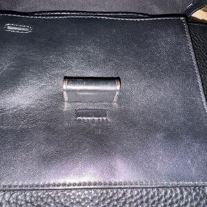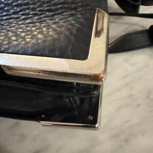 Did you know Mackage made amazing bags? In the 2010s, they were among the most style forward designs crafted with the same luxury materials as the iconic parkas. Gorgeous leather in two 'finishes'. This bag features a cool 'arrow' that fits through closure at front. Some scratches to leather around closure (from use) and metal corners share some signs of wear. Otherwise a perfect example of Mackage bags!