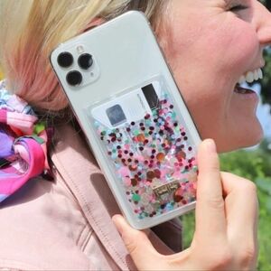 NWT Packed Party Confetti Essentials Stick To It IPhone Android Phone Wallet. Keep your cards & money close to you in this fun addition to your phone! Holds up to 4 cards, easy to adhere & attach to the back of your phone, heavy duty clear vinyl filled with confetti, 3M tape on backside to secure to your phone case, gold plated hardware. Fun colors of red, pink, green, gold, silver, orange & blue. Approximately 2.5" x 4". Brand new with tags! Match with the Packed Party card/money holder in my closet! 2 available!