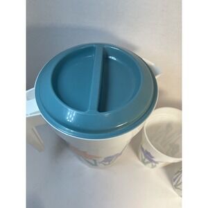 Add some retro charm to your summer kitchen with this vintage PackerWare floral pitcher. With a capacity of 2 quarts and made in the USA, this pitcher is perfect for serving up your favorite beverages. The multicolor floral pattern and two cups make it a unique addition to any dinnerware collection.