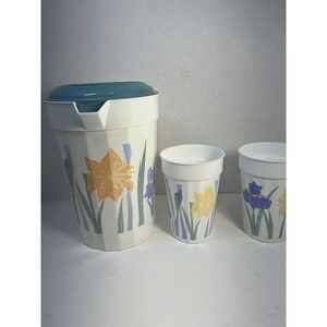 PackerWare Vintage 2 QT Floral Pitcher Made in USA 2 Water Cups