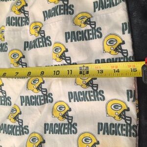 White drawstring bag with Packers logo and text in yellow and green.