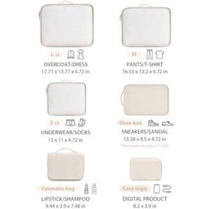 🧿▶【8 Packs a Set】5 Packing Cubes - 2pcs Large( 17.7*13.7*4.7in ), 1pc Medium ( 16.5*12.2*4.7in ), 2Pcs Small ( 13*11*4.72in ). + 1 Shoes Bag + 1 Toiletries Bag +1 Cable Case.8 pcs packing cube set that helps you prepare for upcoming trips efficiently.