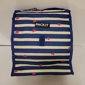 Packit Freezable Lunch Bag Hearts Navy White stripes