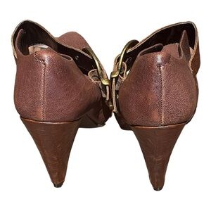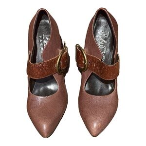 Paco Pacogil Leather Cone Heel Mary Jane Pump Brown 8B