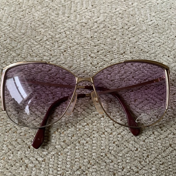 Purplish/pink tinting with gold frames