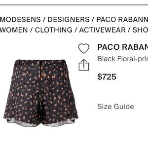 Adorable little silk shorts from Paci Rabanne. Ruffle Trim with floral print. Back pocket has cute little crystal button. Great quality, great condition.