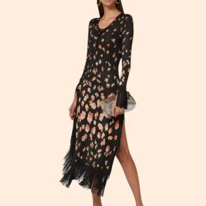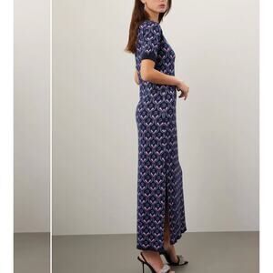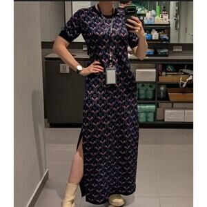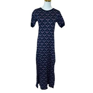Paco Rabanne Blue Logo Knit Midi Dress MEDIUM Bodycon Career Wool Designer $940