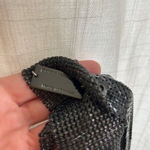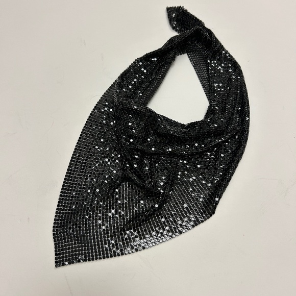 Iconic design from Paco featuring the brands signature chainmail design. Draped silhouette resembles a scarf - adjustable snap closure at back. Simply stunning. Length approx. 22” width approx 13”. Aluminum.