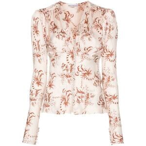 Paco Rabanne Floral Print Diamante Button Blouse Beige - S