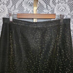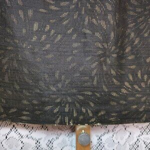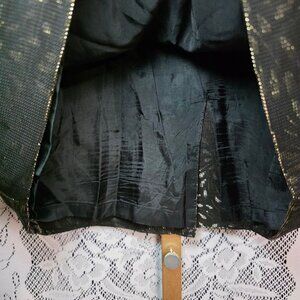 EXCELLENT pre-loved condition! No flaws! Size tag has been removed. Please read approx. measurements carefully. Color is Black and Gold. In some photos it may appear as if some of the floral design is not visible. It's just that the sheer mesh overlay moves around, but all is in perfect condition.