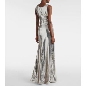 Paco Rabanne Silver Sequin Cut Out Gown Maxi Dress Size US 12 FR 44 Spring '24