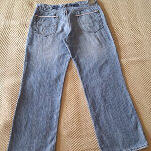 Straight leg jeans, 100% cotton. Size 36x32. Preowned, clean, in great condition. Ships fast from smoke and pet free home.