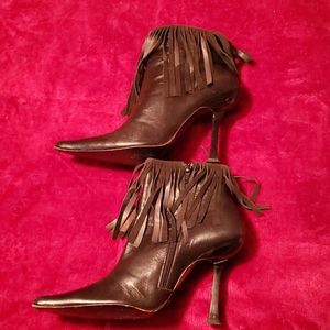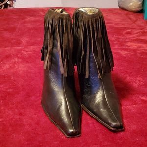 Paco Gil Sexy Black Heeled Fringe Leather Boots Size 6