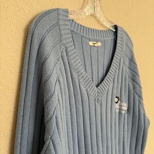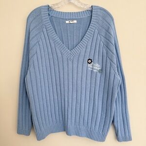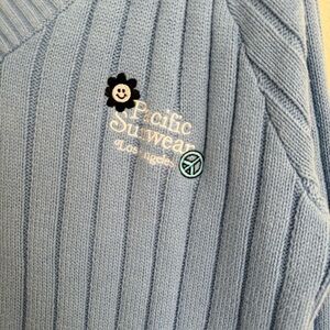 Pacsun Baby Blue Ribbed Knit V Neck Sweater Oversized Preppy Embroidered