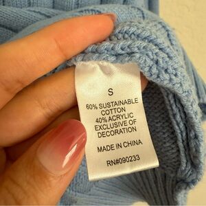 Pacsun Baby Blue Ribbed Knit V Neck Sweater Size S Oversized Preppy Embroidered