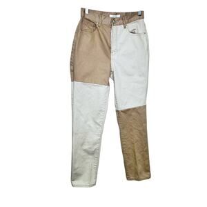Pacsun Beige Cream Two-Tone Paneled High Waist Button Fly Straight Leg Dad Jean. Size 27. Worn once. Measurements taken flat: