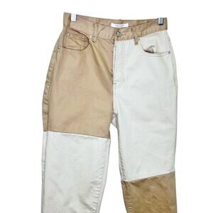 Pacsun Beige Cream Two-Tone Paneled High Waist Button Fly Straight Leg Dad Jean