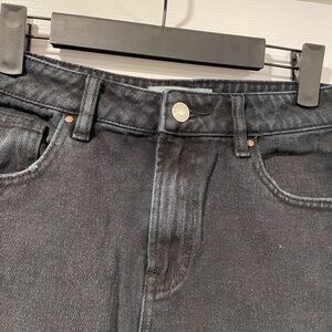Pacsun Black Cotton Denim Distressed Mini Skirt Zip Front 5 Pocket Size 27”