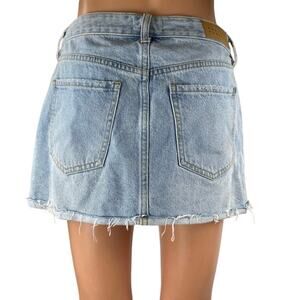 Pacsun Blue Light Wash Raw Hem Frayed Straight Mini Denim Jean Skirt Size 25