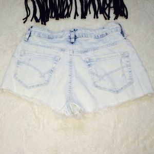 Shorts are super cute and great with crop tops in the summer! They were worn once when I decided I should get a different size. There are no stains or (added) rips. They are a size 3 but can fit someone who's smaller than that as well.
