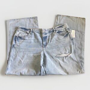 Pacsun Casey Low Rise Baggy Jeans Ripped Slit Light Indigo Size 34 Wide Leg