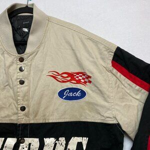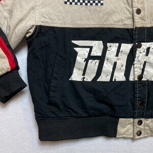 Pacsun Chaos Team Racing Jacket Men's XL Black Bomber Snap Buttons Quilted Lined