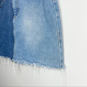 Half dark and half light two toned distressed raw edge mini jean skirt