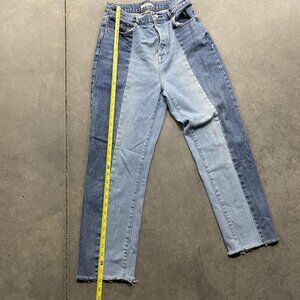 Pacsun Colorblock Patchwork Jeans Womens 29 Blue High Rise Straight Raw Hem