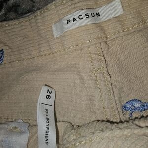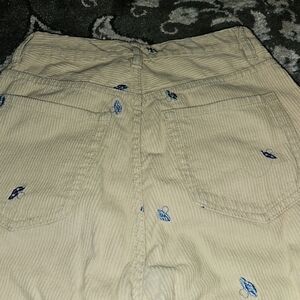 These are in good shape. Pacsun Corduroy tan pants with mushrooms.