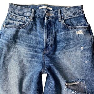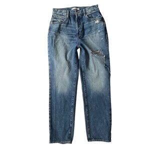 The Dad Jean by Pacsun. 100% cotton light medium wash. Button fly, ripped distress, high rise straight leg. Good condition, no flaws.