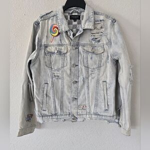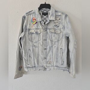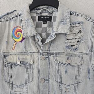 Pacsun Denim Jean Jacket Womens Sz M Distressed Embroidered StreetWear Exellent