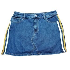 Pacsun Women's Size 28 Jean Skirt Mini Short Medium Wash Side Striped 100% Cotton