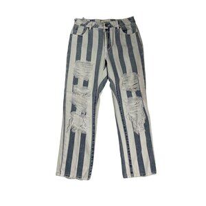 Pacsun Distressed Striped Mom Jean Blue White Size 24