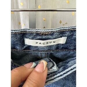 Pacsun Eco Dark Blue High Rise Waisted Frayed Hem Denim Festival Shorts 29