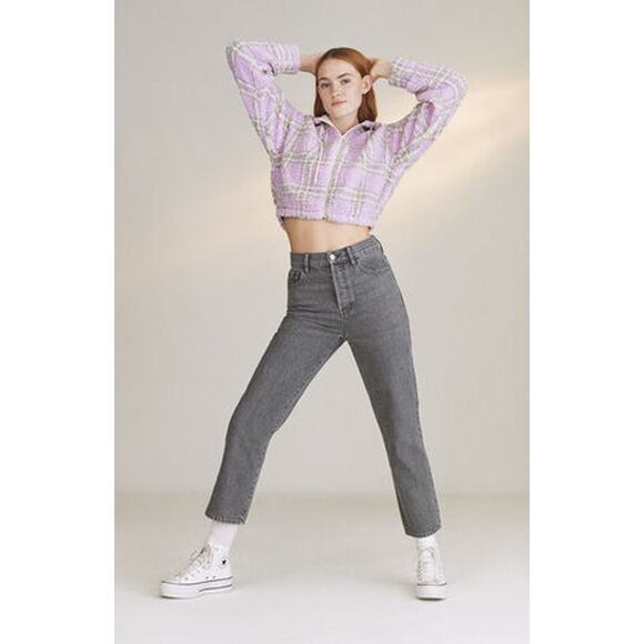 Pacsun Eco Gray High Waisted Straight Leg Button Fly Ankle Cropped Jeans 23