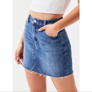PacSun denim mini skirt frayed ends size 28. See actual pic and video for color. Good condition.