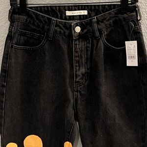 Pacsun Hand Painted Patchwork Black Denim Relaxed Jeans Size 26