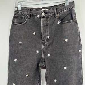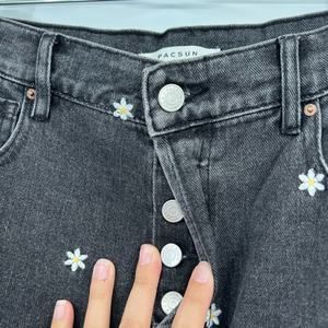 Pacsun High Rise Straight Leg Jeans Button Fly Embroidered Daisies