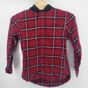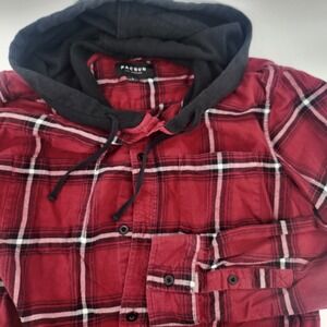 Pacsun Hooded Flannel Shirt Mens L Burgundy Plaid Long Sleeve Casual Button Up
