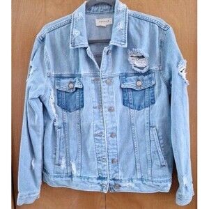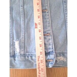 Pacsun Jacket Denim Distressed Destroyed Blue Jean Trucker Pockets Sz Medium