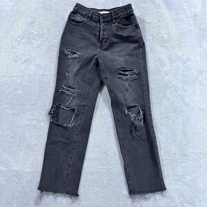 Pacsun Jeans Womens 24 Black High Rise Straight Button Fly Distress