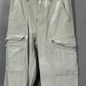 Pacsun Jeans Womens Small Elastic Waist Cargo Straight Leg Zip Fly Cream Cotton