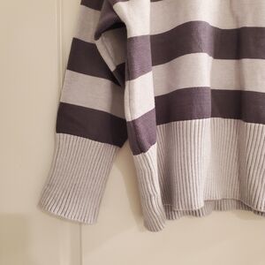 Brand new with tags. Excellent condition. Gray. Striped print. Chunky ribbed knit sweater. Oversized fit. Extremely soft. Perfect for fall!