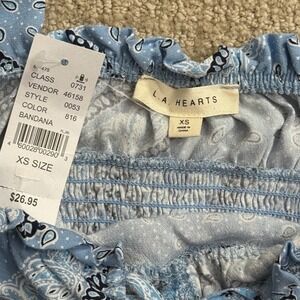 Keywords: Pacsun, L.A. Hearts, Bandana Print, Crop Top, Smocked, Tie Front, Blue Top, XS, Extra Small, Womens Top, Summer Top, Festival Top, Casual Top, Adjustable Straps