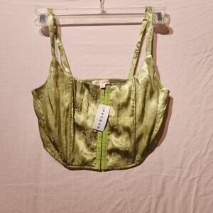 Pacsun LA Hearts Sz S Shiny Lime Green NWT Corset Strappy Top Floral Etching