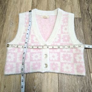 Pacsun La Hearts Fuzzy Retro Floral Crop Sweater Vest Women's XS Pink Coquette